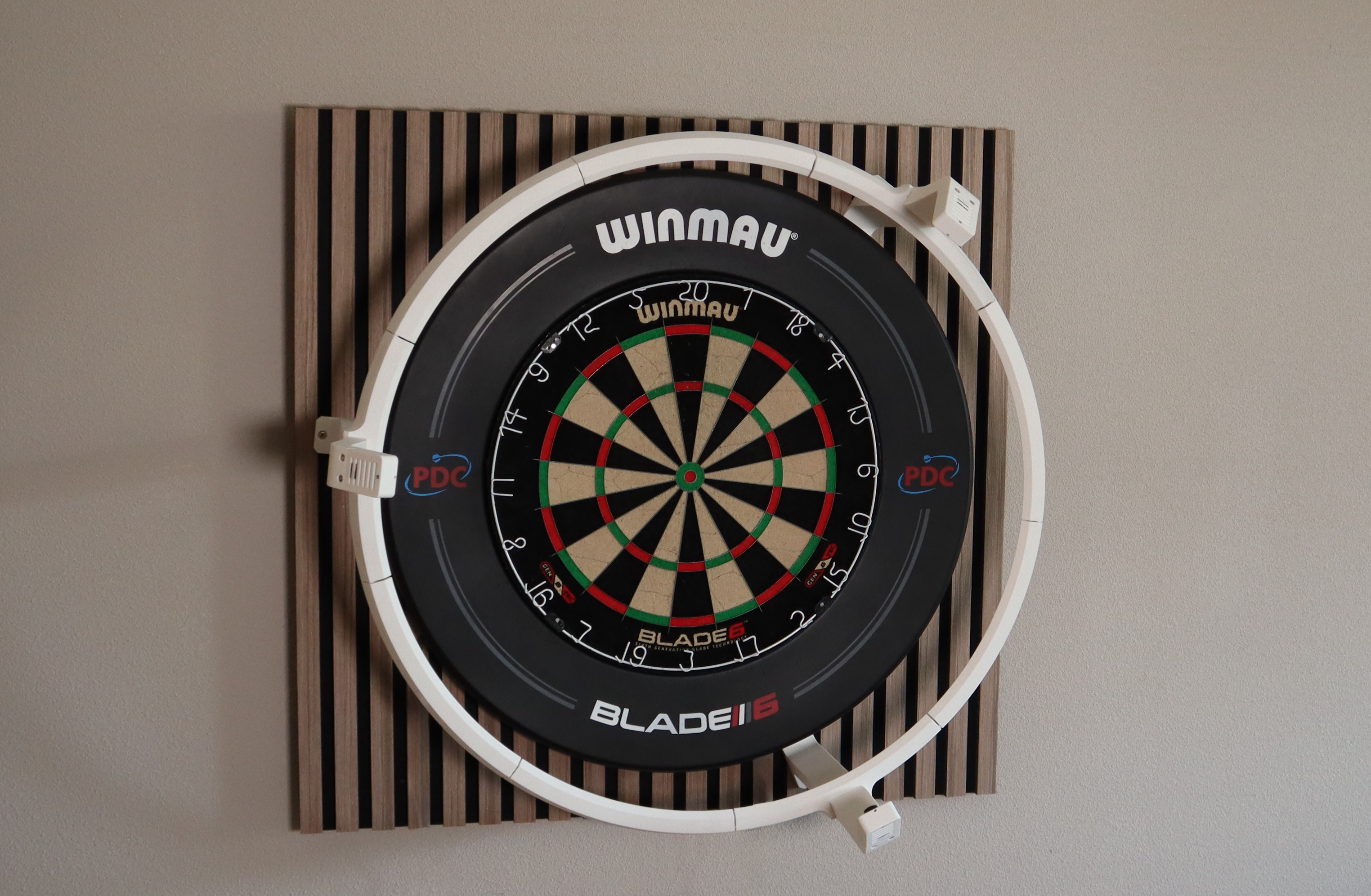 Das Autodarts Komplettset mit Leuchtring ist unser Komplettset. Es enthält zusätzlich einen 3D-gedruckten LED-Ring. Dieses Paket ist ideal für alle, die bisher nur eine Dartscheibe besitzen und mit einem Auto-Scoring-System durchstarten möchten.
